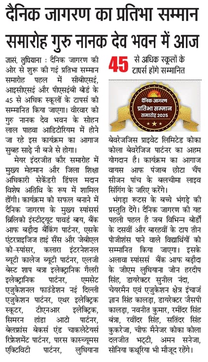 Dainik Jagran's Talent Award Ceremony Is Being Held At Guru Nanak Dev Bhawan Today